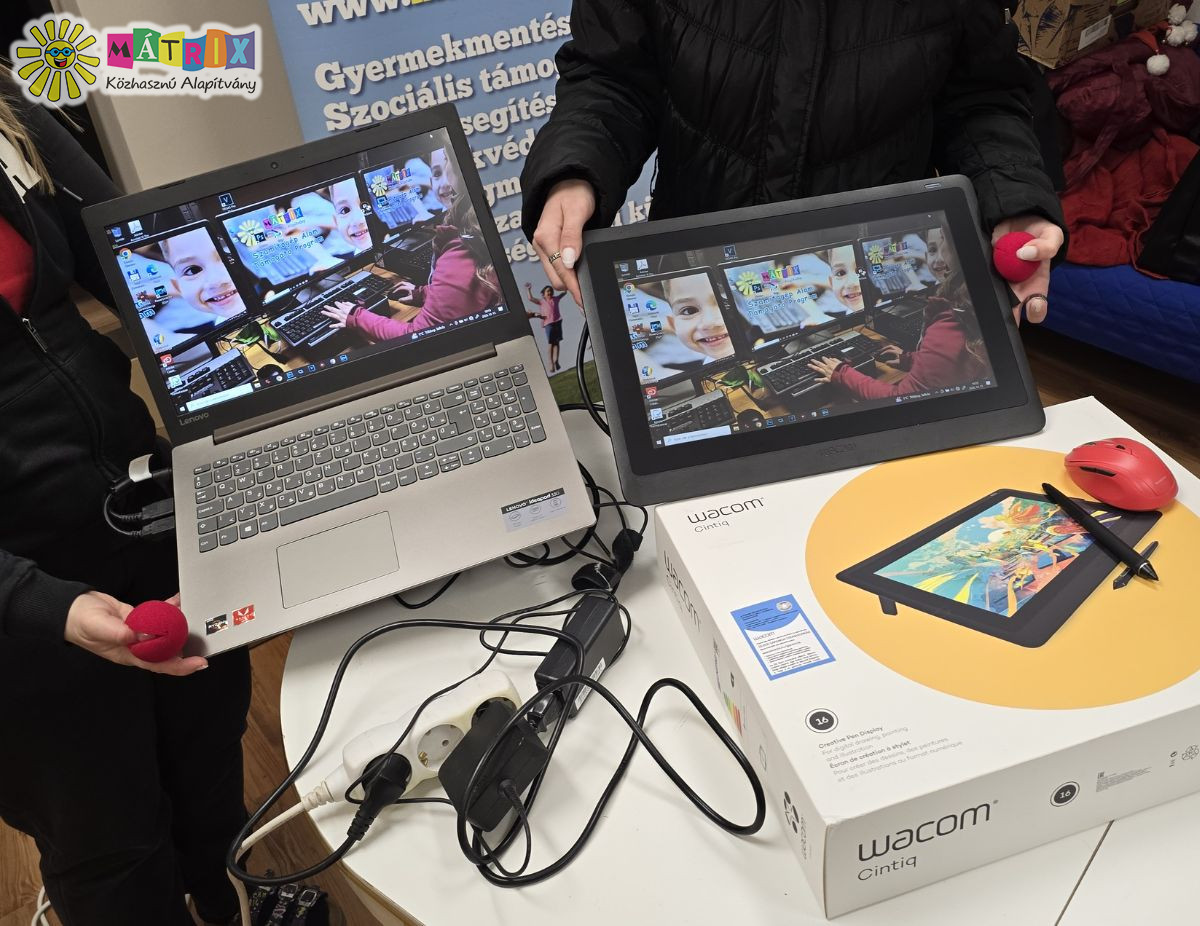 Bohócdoktorok a tehetségek támogatójaA tehetséggondozás és az esélyegyenlőség kiemelten fontos küldetése a Mátrix Közhasznú Alapítvány bohócdoktorainak. A szervezet ezúttal egy digitális rajzgéppel és egy laptoppal nyújtott segítséget egy fiatal tehetségnek, lehetőséget adva arra, hogy kreativitását modern eszközökkel fejlessze tovább. A cél nem csupán az alkotás öröme, hanem az, hogy a gyermek hosszú távon is esélyt kapjon a kibontakozásra. A "Számítógép Álom" támogatói program révén megszámlálhatatlan segédeszköz került gyermekekhez, intézményekbe, szervezetekhez.
